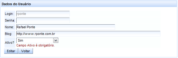 * Edita usuário