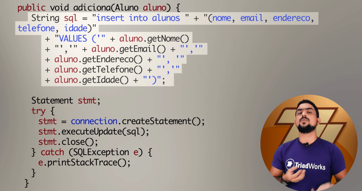Acabamos de lançar um vídeo com a seguinte dica Não Concatene SQL no seu Código Java. Este vídeo faz parte do projeto Dicas de Programação da TriadWorks na qual tem o intuito de passar dicas importantes em forma de VÍDEOS SEMANAIS para programadores de todos os tipos, em especial os iniciantes.